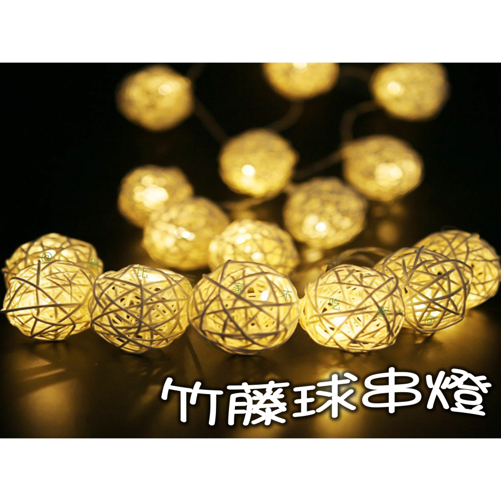 @貨比三家不吃虧@竹藤球串燈 泰國藤球燈 露營燈 聖誕節裝飾 暖色款 浪漫 藤球小夜燈 編織燈串 藤線 掛燈 星藤球燈