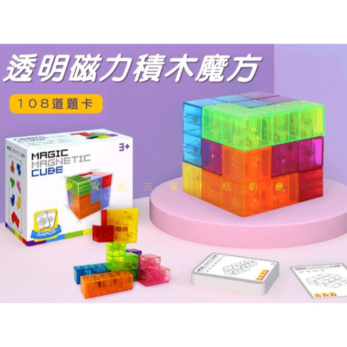 透明磁力積木魔方 魯班立方 兒童玩具 磁鐵積木玩具 索碼 磁性魔方 果凍魔術方塊 7塊 3階魔方 拚裝玩具 磁吸積木魔方