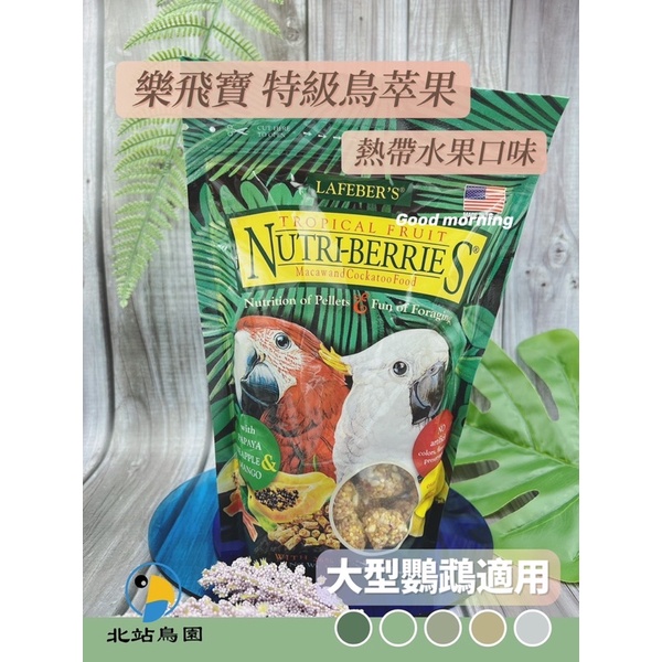 特級鳥萃果主食飼料,含有未磨碎的去殼穀物種子,富含豐富的新鮮水果如木瓜、鳳梨、芒果等,保留完整天然的營養與風味,且讓愛鳥享受如在野外啃咬種子及穀物的樂趣。並添加維他命、礦物質、胺基酸、Omega 3及6、、、等,使愛鳥獲取完整及均衡的營養。