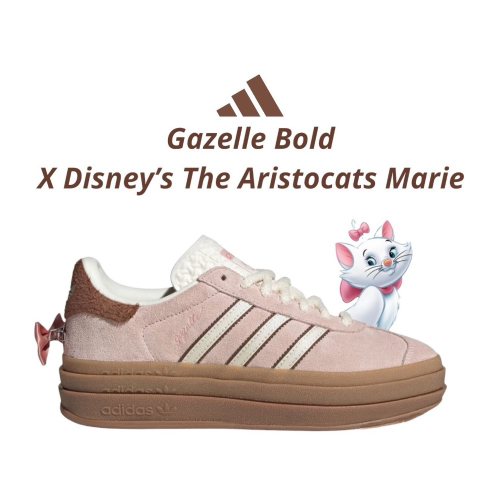 👟adidas GAZELLE BOLD X Disney’s The Aristocats Marie 聯名款休閒鞋 粉白咖色|粉色|櫻花粉|白色|咖啡色|焦糖底|蝴蝶結|迪士尼|瑪麗貓|焦糖底|皮革|麂皮|平底鞋|增高鞋|德訓鞋 女款鞋
