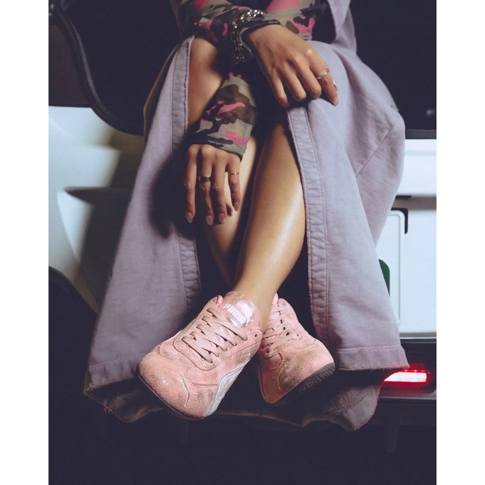 當復古賽車魂遇上粉嫩潮流感,一場讓人心動的時尚碰撞正式上演!PUMA 攜手 atmos pink,推出全新聯名限定鞋款「SPEEDCAT OG FORMULA PINK ATMOS」,在經典賽車輪廓中注入柔和金屬粉色,讓這雙源於速度與熱情的運動鞋,展現甜而不膩的俐落時尚:粉色不是只有可愛,也能很有力量!