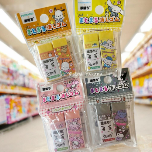 ➖➖➖➖➖➖ 商品介紹 ➖➖➖➖➖➖ 文具控不能錯過的小確幸 ✨ 日本人氣品牌「激落ちちゃん」× Sanrio角色聯名,推出超萌 香味橡皮擦! 不只好擦,還能散發淡淡香氣,讓讀書、寫字都變得療癒起來~ 👉 四款角色 × 四種香味: 🍊 Pochacco 帕洽狗 – 橘子香 🍋 Cinnamoroll 大耳狗 – 檸檬香 🍓 My Melody 美樂蒂 – 草莓香 🥤 Kuromi 酷洛米 – 可樂香 一包雙入設計,可愛度爆表💖 不管是自己用、收藏,還是送禮都超合適! 約寬16×深10×高45mm 材質:氯乙烯樹脂 產地:中國 ➖➖➖➖➖➖ 注意事項 ➖➖➖➖➖➖ ✔️每台手機電腦螢幕皆存在一定色差,如無法接受任何色差的完美者請勿下單唷! ✔️下單前請務必三思,勿下單後又取消或棄單,造成我們的困擾及雙方不愉快 ✔️下單至出貨有一定的程序,請勿催單,若急需請至實體店面購買或使用宅配寄送。 ✔️鑑賞期非試用期,依消費者保護法規定,消費者享有商品貨到日七天猶豫期的權益 (猶豫期並非試用期,商品一經拆封(含保護膜)或使用,將會影響退貨權限,有任何退貨爭議,雙方得選擇依蝦皮退款與退貨政策進行處理。) ✔️鑑賞期內退貨之商品需為全新未組裝且包裝完整,請勿於包裝上書寫文字或任何記號。 ✔️消費性個人商品、即期品,如保養品、沐浴用品、食品、衛生用品、代購商品或網頁上特別之商品,有保存期限及個人衛生問題,排除商品本身有瑕疵之外,一經拆封即使可恢復原狀,依舊會影響退換貨權限。 ✔️為保障彼此權益,拆封請務必全程錄影&清點數量,如有問題,皆以完整錄影檔為憑,並於三日內提出,逾期恕不受理。(包貨區皆有監視器察看) ✔️商品取貨後如需換貨買家需自行負責來回運費。 ✔️如遇商品任何疑問,請多使用「聊聊」功能和我們聯繫,請勿使用評價溝通 📌本賣場己完成稅籍登記,並由系統代開發票,電子發票檔案會於收到商品後按完成訂單後24小時內,經由系統寄到買家绑定的電子信箱,如需統一編號請先到”我的帳戶”其中的”我的電子發票”更改選項即可。 ➖➖➖➖➖➖ 商品出貨 ➖➖➖➖➖➖ 🔸賣場內商品部分現貨,如有現貨會依訂單順序安排,天天出貨,最晚七個工作天內出貨,預購商品依到貨時間安排 🔸如遇例假日、颱風假及其他政府公告休假日,則依情況順延 🔸若遇商品缺貨,將另行告知出貨時間 🔸如果有預購商品請稍等14-20天 ⚠️出貨商品皆會消毒請安心購買 ⚠️商品出貨時會錄影,若購買本賣場商品有掉包之嫌移請自重。 ➖➖➖➖➖➖ 線上客服 ➖➖➖➖➖➖ 🔸對於商品有任何疑問,歡迎隨時聊聊詢問 🔸客服服務時間:周一至周五13:30-22:30,例假日及國定假日休息哦 💕關注💕《寶舖TAKARA》掌握新品上架動態,追蹤優惠及最新活動📣 🔺產品照片為自行拍攝製成,如果盜用將會涉及侵權,我方將追究法律責任還請三思🔺