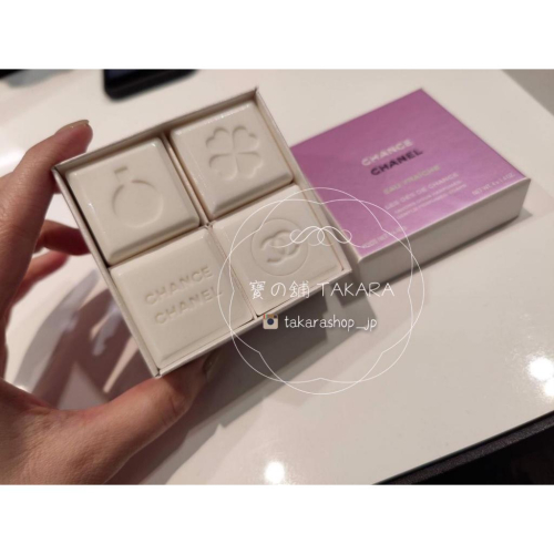 ➖➖➖➖➖➖ 商品介紹 ➖➖➖➖➖➖ 方形柔膚皂四入裝組合, 配方注入「香奈兒CHANCE綠色氣息系列」的晶亮花香調, 洗後肌膚散發淡雅香氣。 柔膚皂表面刻印 CHANCE 幸運象徵符碼, 為日常生活增添一絲歡樂魔法。 不想使用的話,也可以當衣櫃香氛 ➖➖➖➖➖➖ 注意事項 ➖➖➖➖➖➖ ✔️每台手機電腦螢幕皆存在一定色差,如無法接受任何色差的完美者請勿下單唷! ✔️下單前請務必三思,勿下單後又取消或棄單,造成我們的困擾及雙方不愉快 ✔️下單至出貨有一定的程序,請勿催單,若急需請至實體店面購買或使用宅配寄送。 ✔️鑑賞期非試用期,依消費者保護法規定,消費者享有商品貨到日七天猶豫期的權益 (猶豫期並非試用期,商品一經拆封(含保護膜)或使用,將會影響退貨權限,有任何退貨爭議,雙方得選擇依蝦皮退款與退貨政策進行處理。) ✔️鑑賞期內退貨之商品需為全新未組裝且包裝完整,請勿於包裝上書寫文字或任何記號。 ✔️消費性個人商品、即期品,如保養品、沐浴用品、食品、衛生用品、代購商品或網頁上特別之商品,有保存期限及個人衛生問題,排除商品本身有瑕疵之外,一經拆封即使可恢復原狀,依舊會影響退換貨權限。 ✔️為保障彼此權益,拆封請務必全程錄影&清點數量,如有問題,皆以完整錄影檔為憑,並於三日內提出,逾期恕不受理。(包貨區皆有監視器察看) ✔️商品取貨後如需換貨買家需自行負責來回運費。 ✔️如遇商品任何疑問,請多使用「聊聊」功能和我們聯繫,請勿使用評價溝通 📌本賣場己完成稅籍登記,並由系統代開發票,電子發票檔案會於收到商品後按完成訂單後24小時內,經由系統寄到買家绑定的電子信箱,如需統一編號請先到”我的帳戶”其中的”我的電子發票”更改選項即可。 ➖➖➖➖➖➖ 商品出貨 ➖➖➖➖➖➖ 🔸賣場內商品部分現貨,如有現貨會依訂單順序安排,天天出貨,最晚七個工作天內出貨,預購商品依到貨時間安排 🔸如遇例假日、颱風假及其他政府公告休假日,則依情況順延 🔸若遇商品缺貨,將另行告知出貨時間 🔸如果有預購商品請稍等14-20天 ⚠️出貨商品皆會消毒請安心購買 ⚠️商品出貨時會錄影,若購買本賣場商品有掉包之嫌移請自重。 ➖➖➖➖➖➖ 線上客服 ➖➖➖➖➖➖ 🔸對於商品有任何疑問,歡迎隨時聊聊詢問 🔸客服服務時間:周一至周五13:30-22:30,例假日及國定假日休息哦 💕關注💕《寶舖TAKARA》掌握新品上架動態,追蹤優惠及最新活動📣 🔺產品照片為自行拍攝製成,如果盜用將會涉及侵權,我方將追究法律責任還請三思🔺