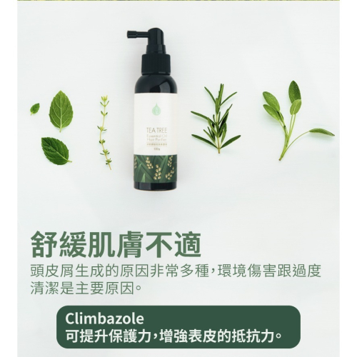 全成份:Water、Alcohol、Propylene Glycol、Melaleuca Alternifolia (Tea Tree) Leaf Extract、PEG-40 Hydrogenated Castor Oil、Phenoxyethanol& Caprylyl Glycol、Menthol、4-Terpineol、Melaleuca Alternifolia (Tea Tree) Leaf Oil、Climbazole、Mentha arvensis leaf oil、Eucalyptus globulus leaf oil、Allantoin