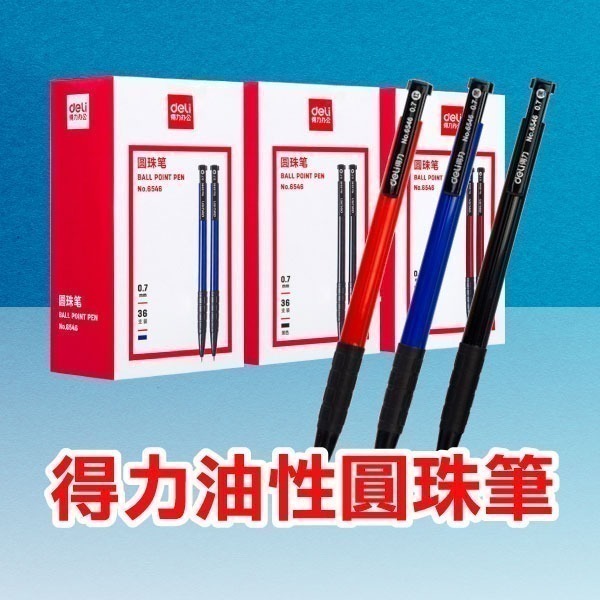 🔸產品名稱:得力油性圓珠筆 一盒36支裝 藍/紅/黑