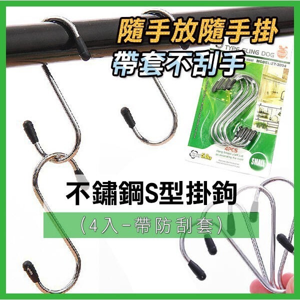 🔸品名:不鏽鋼S型掛鉤 4入帶防刮套