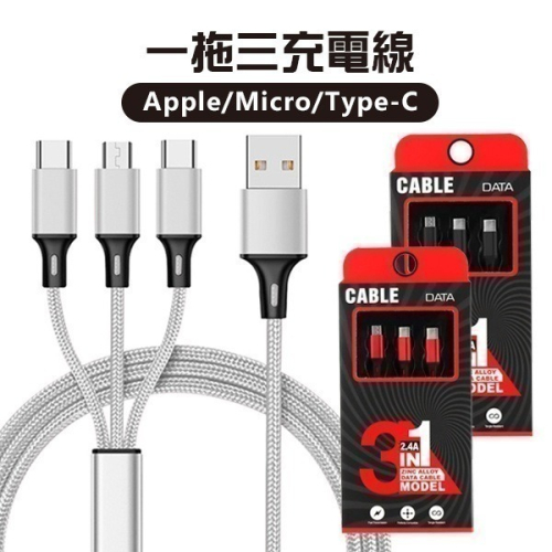 佰通一拖三充電線 apple/micro/type-c USB 一分三 傳輸線 編織線 快充線【飛兒】20-2-51