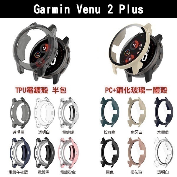 出清特價《Garmin Venu 2 Plus PC+鋼化玻璃一體殼/TPU電鍍殼 半包》保護殼【飛兒】
