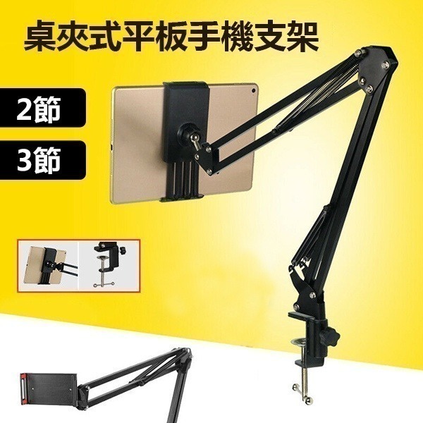 《(A)桌夾式平板手機支架》可折疊伸縮!手機平板支架 伸縮支架 平板架 懸臂桌夾支架 追劇直播手機架 桌用手機架【飛兒】