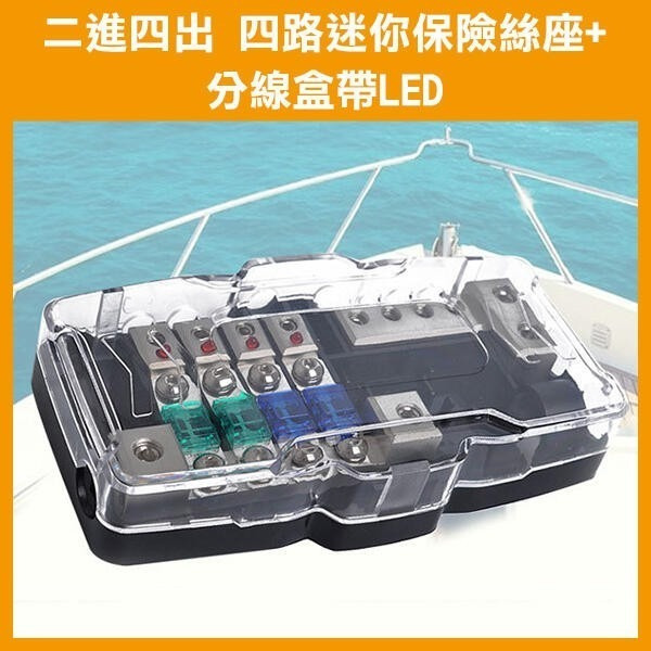 《二進四出 四路迷你保險絲座+分線盒帶LED》四路保險絲座 亮燈車船電器 線路斷路器 音響改裝 露營拖車/露營車【飛兒】