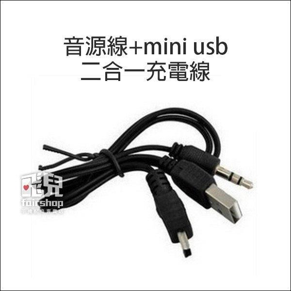 多功能!音源線 mini usb 二合一充電線 AUX 梯型充電線 可接音響/手機/電腦/喇叭/MP4【飛兒】 Z43