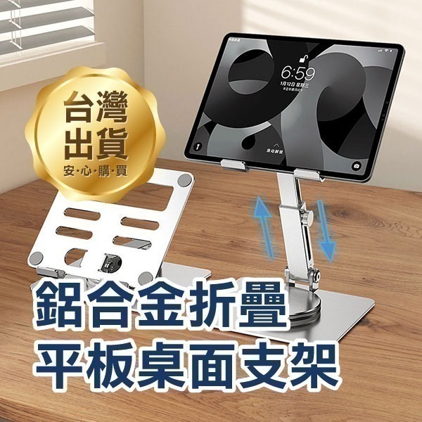 《鋁合金折疊平板桌面支架》可伸縮 360°旋轉 平板支架 懶人支架 摺疊支架 桌面支架【飛兒】