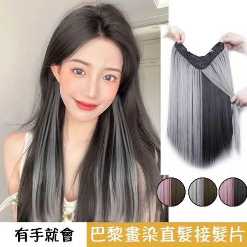 [台灣現貨附發票]❤巴黎畫染直髮假髮片 假髮女長直髮巴黎畫染V型沉睡式掛耳染髮片蓬鬆自然增髮量假髮片 B I