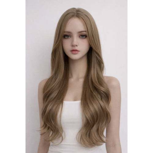 0244號 淺亞麻 直播專屬 1月6日 蕾絲中分長捲髮亞麻色整頂式假髮