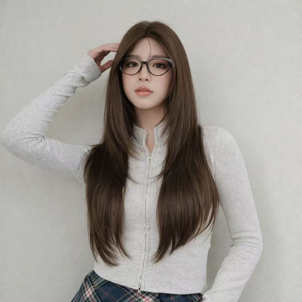 0298號 亞麻茶棕 1月7日 中分款長直款整頂式假髮