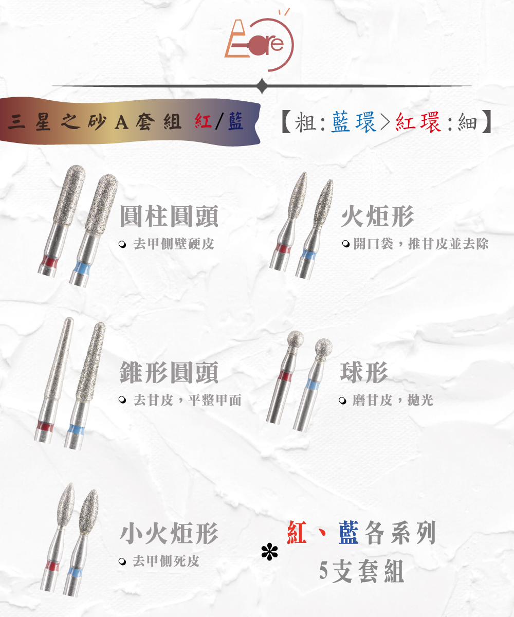 伊凱兒-[三星之砂](A套組)鑽石砂俄式美甲磨頭套組(紅/藍標) /前置保養/俄式保養/去死皮/修甲工具/美甲工具
