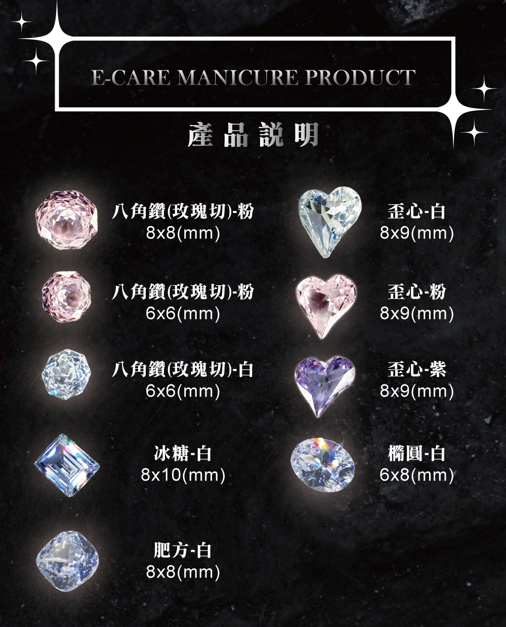 伊凱兒 [ 光之皓潔 ] 美甲貼鑽 尖底鑽 透底鑽 飾品 鑽石 玫瑰切 肥方 冰糖 歪心 耳釘
