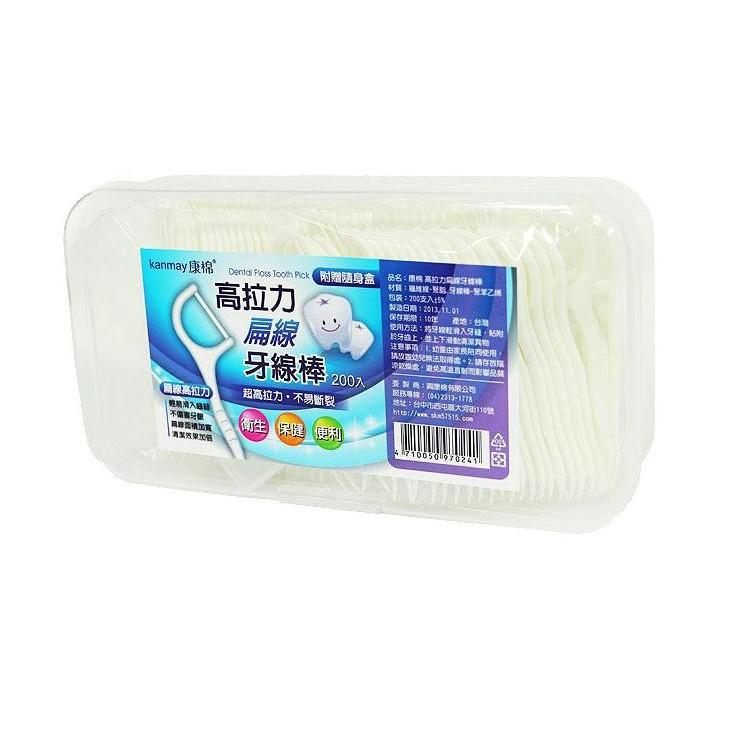 康棉高拉力扁線牙線棒200支/盒(附贈隨身盒)