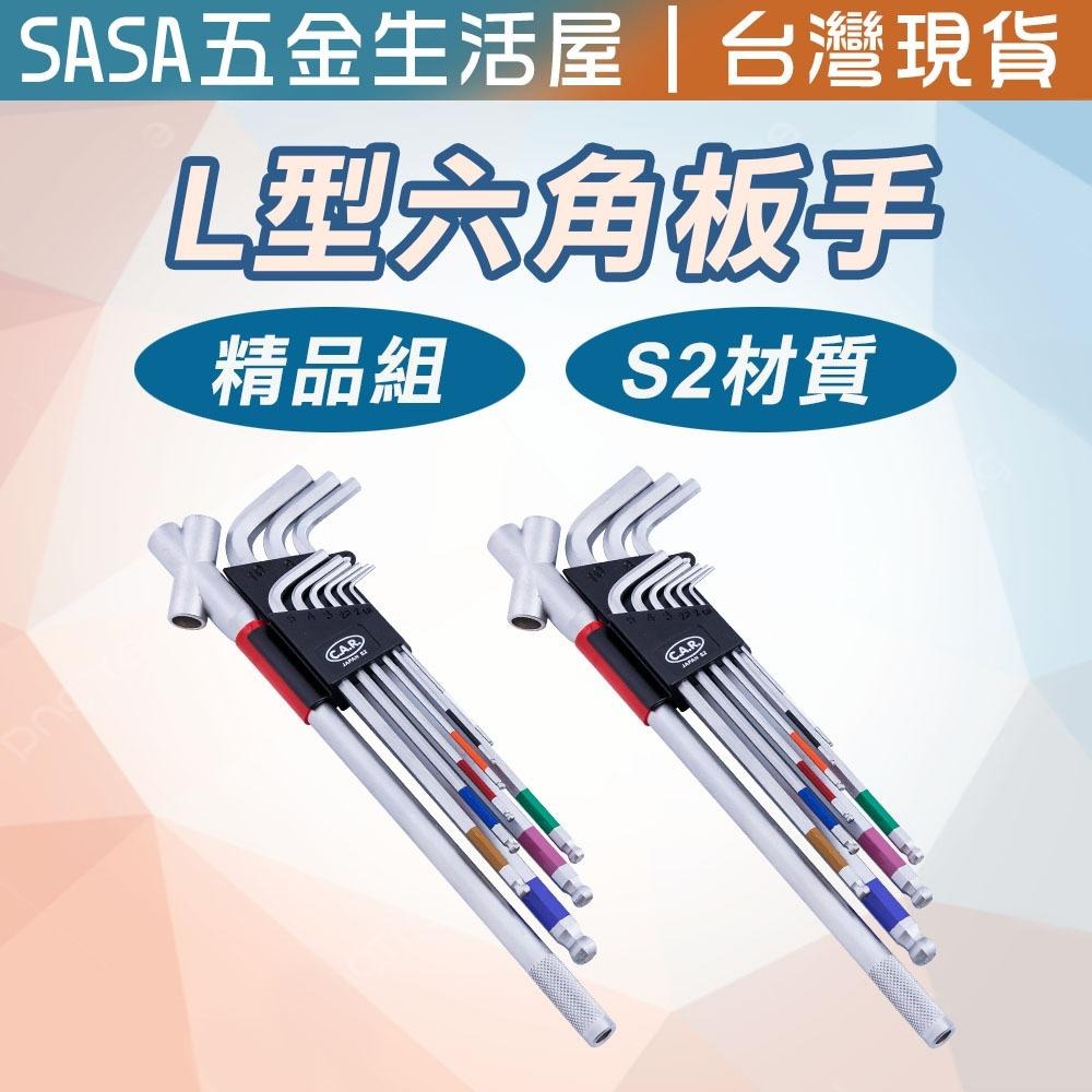 【台灣出貨】L型六角板手9支組 附加力桿 精品 白金特長球型 球頭附強磁 S2材質 彩條 台灣製造