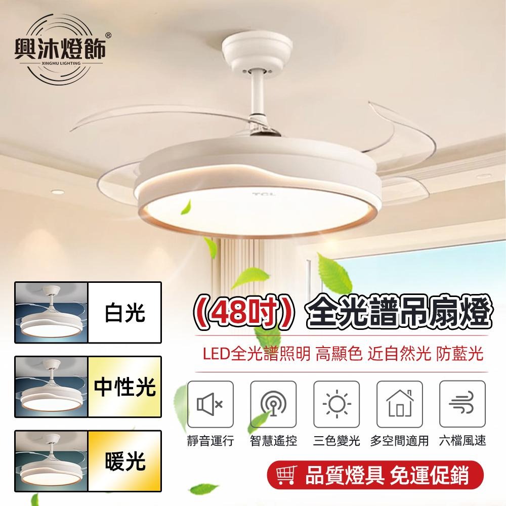 【興沐燈飾】48吋42吋隱形風扇燈 吸頂家用客廳餐廳臥室變頻簡約電扇吊燈 大風力吊扇燈 風扇 電風扇
