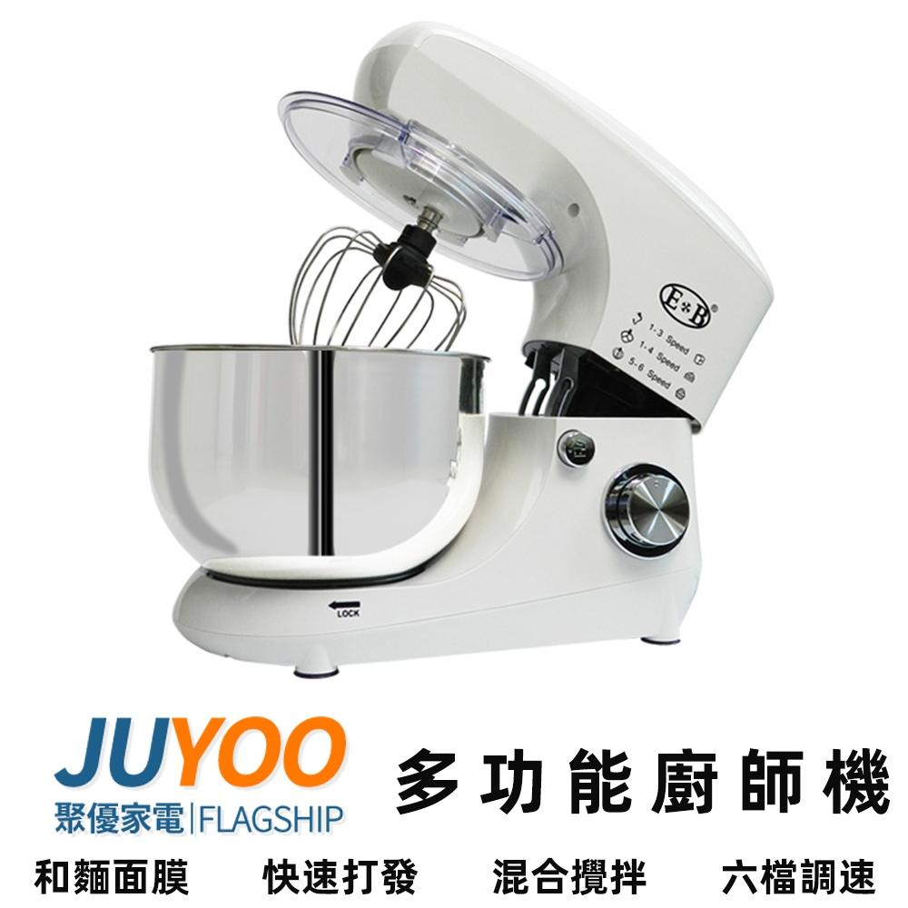 【商品介紹】 品牌:EB/億貝斯特 BSMI:R3E558 產品型號:EB-1702 產品顏色:白色 額定電壓:110V 額定功率:1200W 檔位調節:6檔位調節 和麵量:150-1000g麵粉 主要功能:和麵、打發、攪拌 麵盆容量:5L 機器尺寸:390*235*320mm 包裝尺寸:418*252*350mm 貨源:原廠公司貨 保固:12個月 【產品標配】 1⃣攪拌鍋(不鏽鋼) 2⃣打蛋籠(不鏽鋼) 3⃣攪拌勾(鋁合金) 4⃣攪拌刀(鋁合金) 5⃣說明書 6⃣保修卡 注:產品可加購不鏽鋼面勾 注意事項:(新機用標配的鈎不超過800克) 1,機器配件請不要使用熱水或者洗碗機清洗。 2,産品標配爲鋁質攪面鈎,其最大的優點是攪面量大,起團快;但出膜的時間稍長一點,大約在15-25分鍾左右。攪面量1000克。 3,蛇形不鏽鋼鈎最大優點爲出膜快,大約時間在10-15分鍾即可出膜;但攪面量相對較少,大約一次不超過600-800克麵粉左右。 4,機器揉麵我們建議使用1-3檔揉麵,不建議用3檔以上揉麵,4-6檔是打奶油。 攪面:1-3檔 餡料:1-4檔 打發:5-6檔 一般攪拌的比例2:1或是5:3 【產品特點】 1、5升大容量。 2、1200W大功率馬達,強勁扭力。 3、六段檔位選擇,滿足您的不同需求。 4、行星軌跡攪拌,攪拌食物無死角; https://s-cf-tw.shopeesz.com/file/tw-11134202-7rbk0-mads1xfds0ae8f 客服電話:【02-5596-4245】 接待時間:每日09:00-18:00,周休假日除外。 關於產品發票:本賣場為政府合法立案登記,每筆訂單皆有開立發票,售後有保障。 關於產品保固:全部東西保固1年,出現任何品質問題,免費更換,保固無憂,放心訂購。 https://s-cf-tw.shopeesz.com/file/tw-11134202-7rbkc-mads1xnfg8hle9