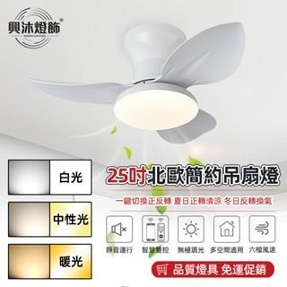 【XINGMU 興沐】25吋吸頂吊扇燈 變頻靜音風扇吊燈 北歐餐廳燈客體燈 帶遙控器電風扇燈 三色變光 APP控制