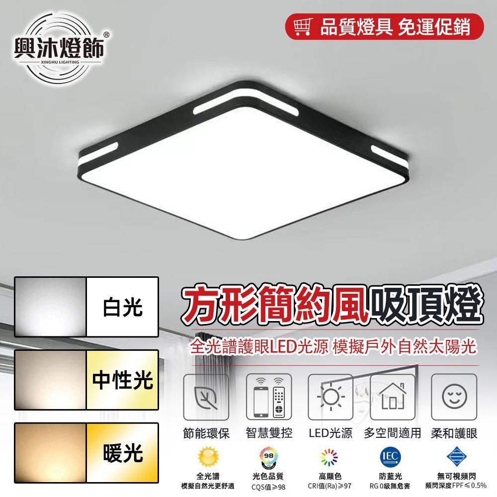 【XINGMU 興沐】臥室方形吸頂燈 超薄led吸頂燈 北歐簡約現代家用陽台主臥室燈 房間燈 無極三色調光 110v