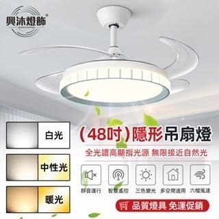 【XINGMU 興沐】48吋奶油風隱形吊扇燈 客廳臥室餐廳吊led風扇燈 現代簡約家用智慧吸頂風扇燈 dc變頻吊扇燈