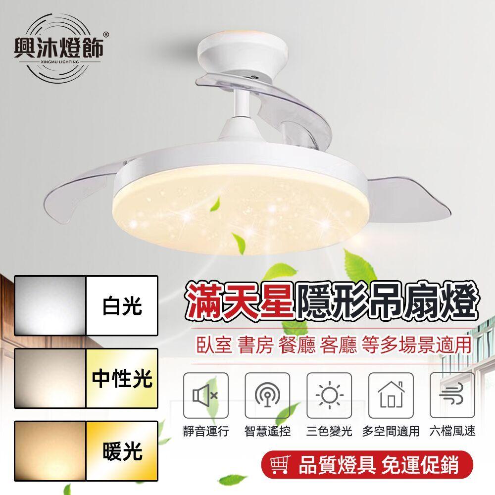 【XINGMU 興沐】滿天星吊扇燈 隱形吊扇燈48吋風扇燈 led風扇吊燈 新款簡約現代客廳吊燈 臥室家用電風扇吊燈