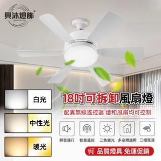 【XINGMU 興沐】吊扇燈 e27吊扇燈 臥室風扇燈 小型18吋吊扇 智慧遙控led燈 e27螺旋燈頭