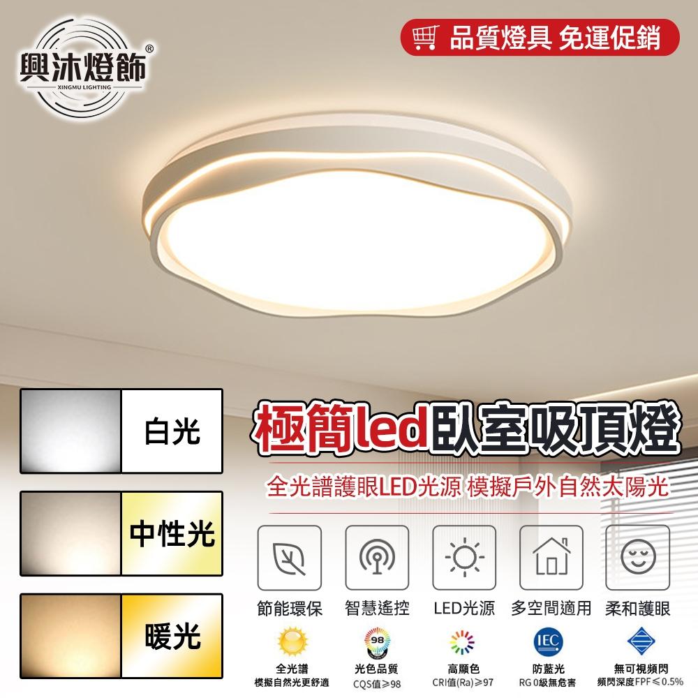 【XINGMU 興沐】吸頂燈 臥室吸頂燈 全光譜led吸頂燈 簡約圓形平板燈 奶油風花朵兒童書房燈 調光吸頂燈 遙控燈具