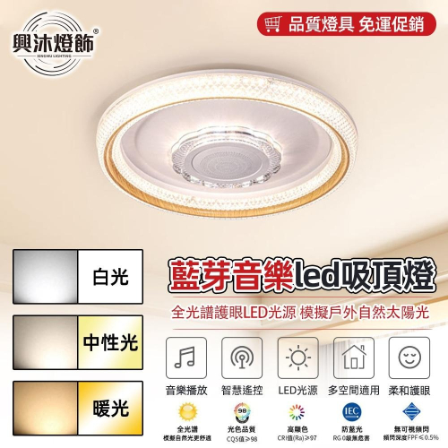 【XINGMU 興沐】 新款圓形藍牙音樂吸頂燈 110V日式音響燈 無極調光臥室燈 圓形吸頂燈 支持三色變光 現貨