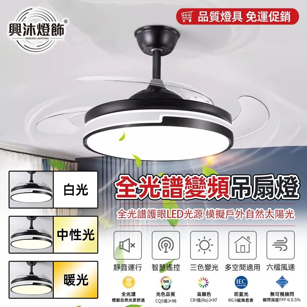 【XINGMU 興沐】42吋隱形吊扇燈 led臥室風扇燈 四葉智慧電風扇 現代客廳變頻吊扇 北歐吊燈 120W電扇燈風扇