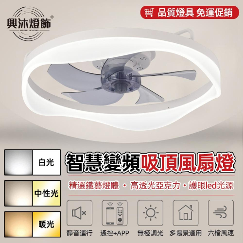 【XINGMU 興沐】新款風扇吸頂燈 輕奢北歐臥室隱形電扇燈 餐廳客廳變頻風扇燈 無極調光 6檔風速 吸頂風扇燈 風扇