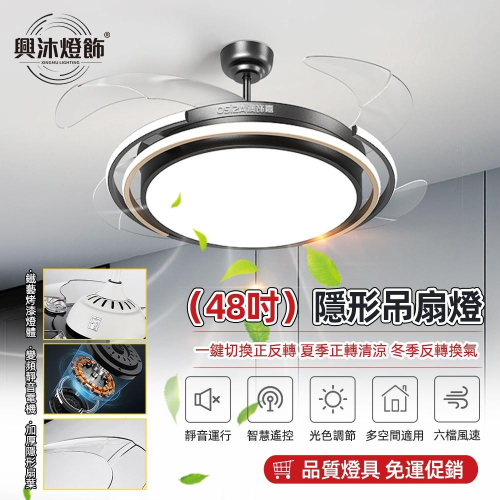 【XINGMU 興沐】48吋吋隱形吊扇燈 輕奢創意led風扇燈 餐廳客廳風扇吊燈 北歐現代吊扇 120W吊燈扇風扇燈