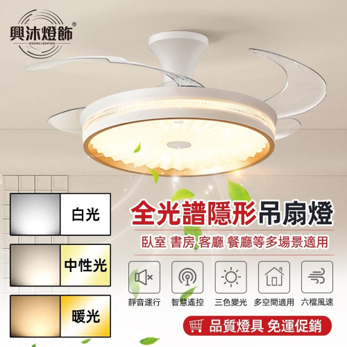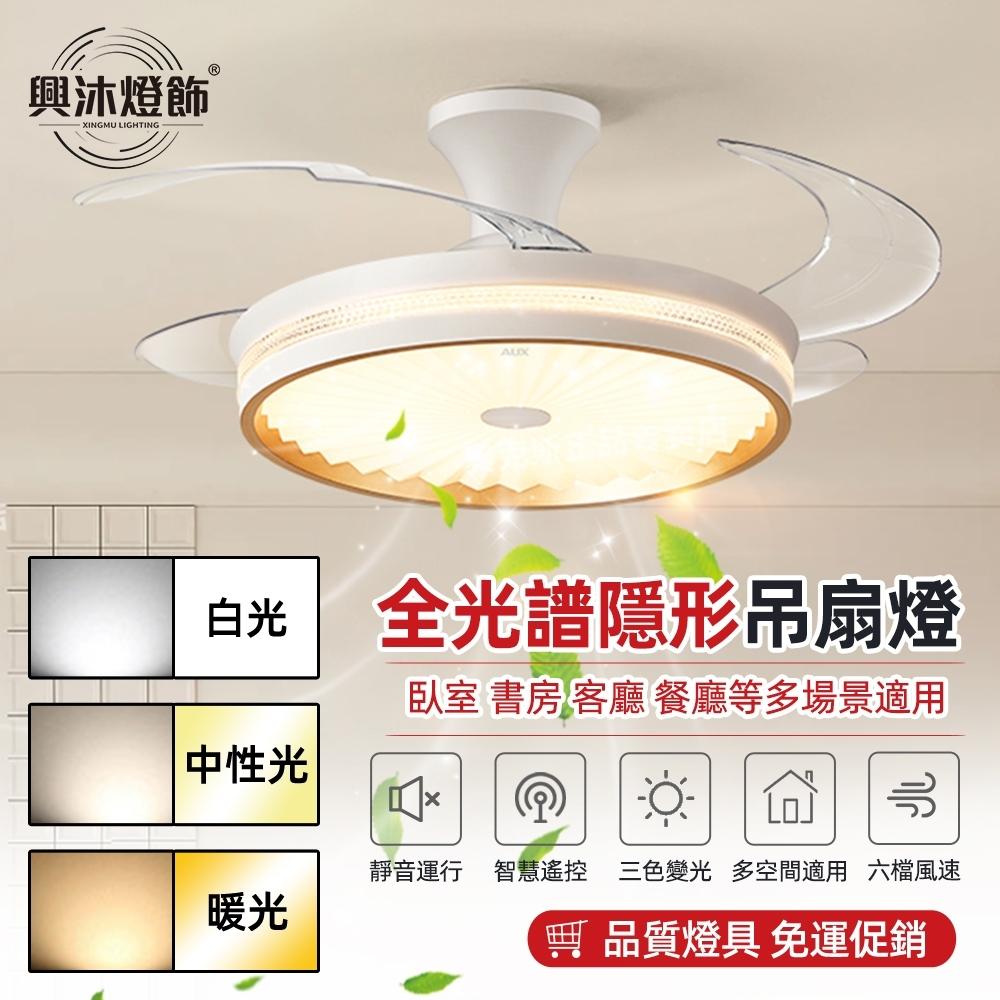 【XINGMU 興沐】48吋滿天星隱形吊扇燈 led全光譜風扇燈 客廳隱形吊燈 水晶燈 dc循環扇隱形電風扇 多功能電扇