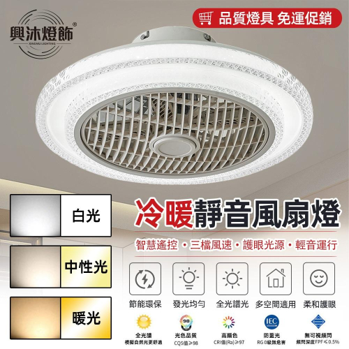 【XINGMU 興沐】隱形冷暖風扇燈 臥室led吊扇燈 多功能智慧電扇燈 新品壁掛暖風機 暖氣扇取暖燈 雙層冷暖風扇燈