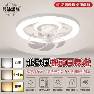 【XINGMU 興沐】風扇燈 廣角搖頭吊扇燈 新款家用led燈吸頂風扇 極簡臥室隱形燈扇一體 110V低噪音電風扇吊燈