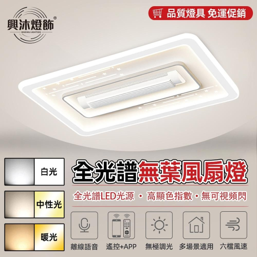【XINGMU 興沐】風扇燈 無扇葉吊扇燈 客廳流星雨長方形吸頂風扇燈 110V低噪音無葉電風扇 全光譜客廳吸頂燈具風扇