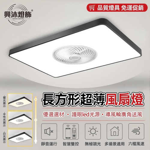 【XINGMU 興沐】長方形led吸頂燈風扇燈 客廳隱形吊扇燈 超薄馬卡龍循環扇燈 靜音電風扇 144W智慧風扇燈電扇