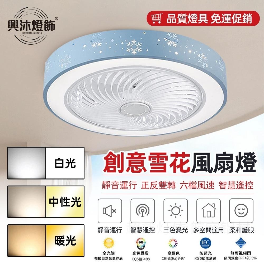 【XINGMU 興沐】風扇燈 臥室led風扇 吸頂燈風扇 創意臥室兒童吊扇燈 智慧超薄簡約循環風扇燈 多功能靜音吊扇吊燈