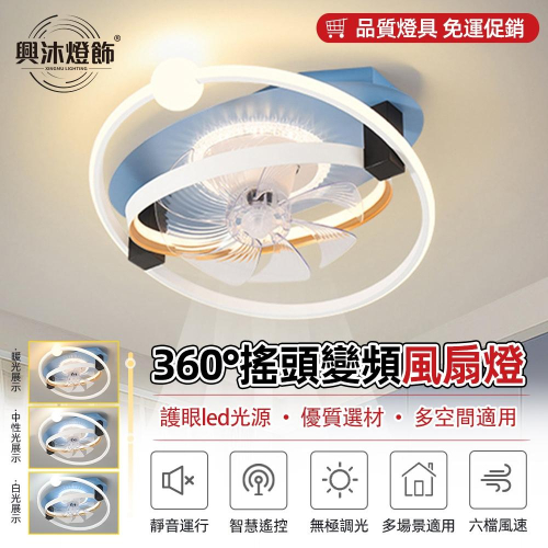 【XINGMU 興沐】新款臥室搖頭led風扇燈 吸頂造型吊扇燈 簡約現代餐廳書房變頻一體電扇燈 網紅吸頂燈扇 輕奢百搭燈