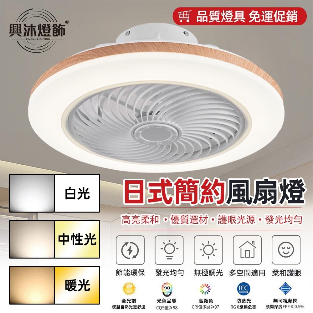 【XINGMU 興沐】風扇燈 臥室吊扇燈 LED吸頂燈 原木色隱形電風扇吊燈 臥室現代超薄吸頂電風扇 靜音風扇 無極調光