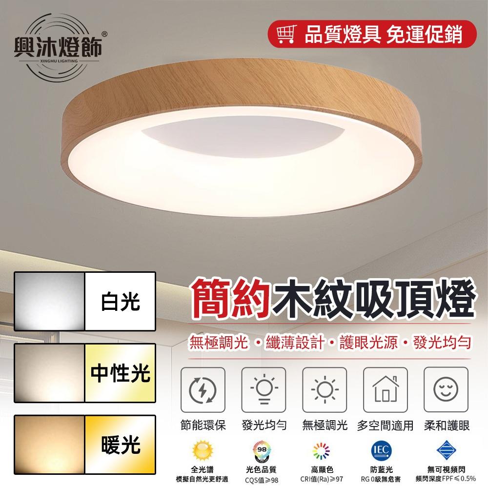 【XINGMU 興沐】吸頂燈 日式50公分超薄led吸頂燈 北歐風格實木臥室吸頂燈 原木客廳燈 圓形吸頂燈 簡約書房間燈