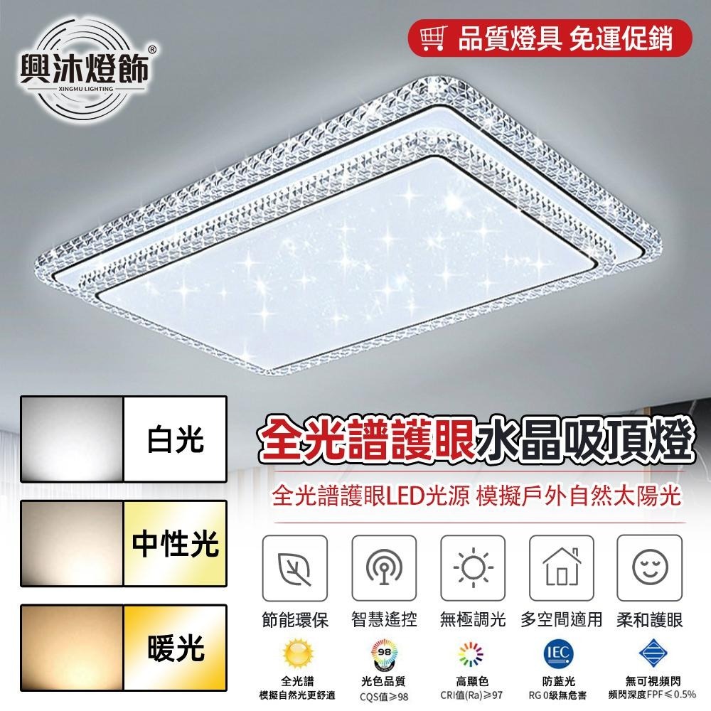 【XINGMU 興沐】吸頂燈 客廳長方形吸頂燈 120W輕奢水晶雙層滿天星led吸頂燈 書房全光譜護眼燈 臥室燈具可遙控