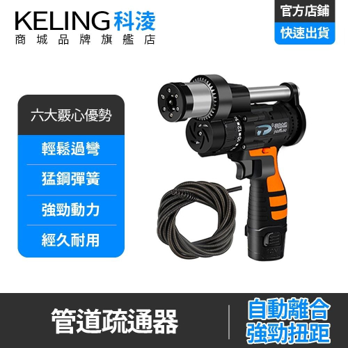 ※ 商品參數 ✔️商品名稱:空心鉆自動離合疏通器 ✔️品牌:【KELING 科淩】科淩 ✔️材質:ABS、錳鋼軟管、 ✔️型號:TSY885 ✔️顏色:主機黑色 ✔️堵頭材質:高錳鋼延長彈簧軟管 ✔️ 彈簧直徑:1.6公分 ✔️適用管子規格:2-10公分 ✔️供電方式:鋰電充電 ✔️電壓:12V 1.3AH ✔️高頻率連續使用時長:30分鐘 ✔️使用場景: 浴室馬桶、廚房水槽油污、地漏 、下水道 、等家庭管道 ... ✔️商品淨重:1.4(kg) 🎁產品清單🎁 •鋰電充電鑽*1 •鋰電池*1 •充電器*1 •說明書*1 •包裝盒*1 •1.5米頭簧*1 •3米疏通彈簧*1 ✔️【注意事項】 ✔️本商品為高頻率電器,針對生活中大多數堵塞有效疏通,100%疏通, ✔️#3米延長簧 可相接多條 (適合遠距離疏通) ✔️#鋰電池一組 可單獨購買 (純銅電機不燒機) ✔️自動離合技術,開啟疏通新時代 ✔️從容應對,多種堵塞物 ✔️女士也能,輕易操作 ✔️強勁扭矩,提供澎湃動力 ✔️自動離合器,自動夾緊自動松開 ✔️自動夾緊,自動松開,進給力大,過彎力強,橄欖頭簧設計 ✔️65錳鋼彈簧,經久耐用 ✔️疏通.就4步 ✔️插.壓.噴:復 ✔️插:將彈簧插進管道最深處,彈簧預留 在管道口外20~30 cm; ✔️壓:扣動扳機並下壓疏通機,將轉動的彈簧壓管道內; ✔️拉:松開扳機,將疏通機與管道口再次 拉開一定距離,扣動扳機將彈簧壓 進管道內; ✔️復:重復第三步操作,直至用水測試 疏通管道為止。 點動 拉直 握彎 用力 1、點動:電鉆點動開啟,開2秒, 停2秒, 觀察+重復。 2、拉直:操作者兩人之間 彈簧要盡量拉直。 3、握彎:彈簧頭往後2-3公分握成30-40度彎。 4、用力:將握好彎的彈簧插入管道,到插不動為止,雙手握彈簧準備推入,在電鉆帶動彈簧轉動瞬間用力推入(推力大於5公斤),彈簧在轉動+推動作用下,轉動幾圈即可通過反水彎。 註意: 1、初學者首次使用建議先用細彈簧,以便掌握要領。 2、過彎後繼續深入疏通應盡量適當放水(邊轉彈簧邊放水),利於沖刷管道帶走雜物及清洗疏通彈簧。 3、當深入超過2米時,需小心推進,進二退一,防止彈簧卡住不轉退不出來。(最近卡簧比率較高)號