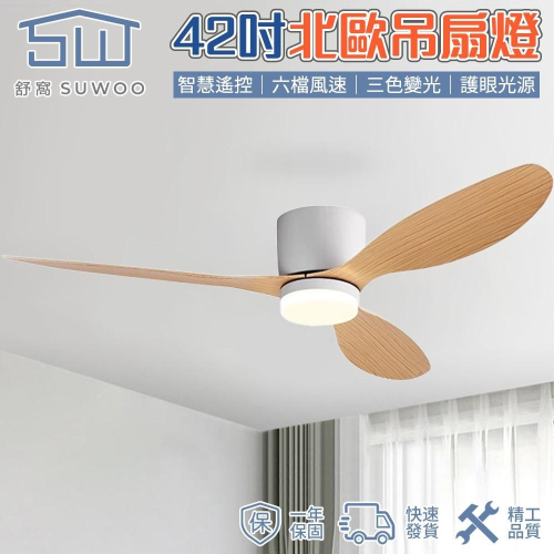 【SUWOO 舒窩】42吋吸頂燈吊扇燈 復古風扇 餐廳客廳吊燈 電風扇燈 靜音電扇帶燈 智慧app遙控 全光譜 台灣現貨