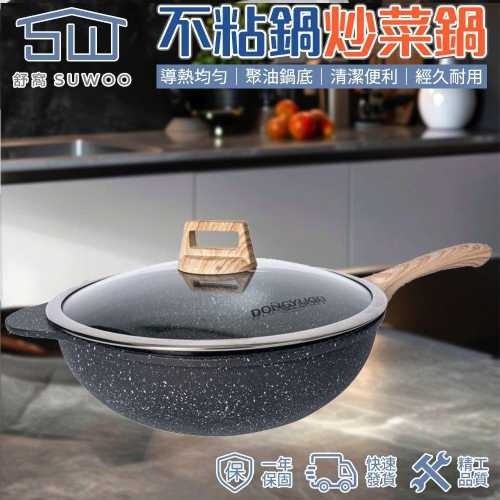 【現貨一日達】麥飯石炒鍋 不粘炒鍋 家庭炒鍋 電磁爐燃氣灶通用 不粘鍋(台灣現貨 台灣保固)
