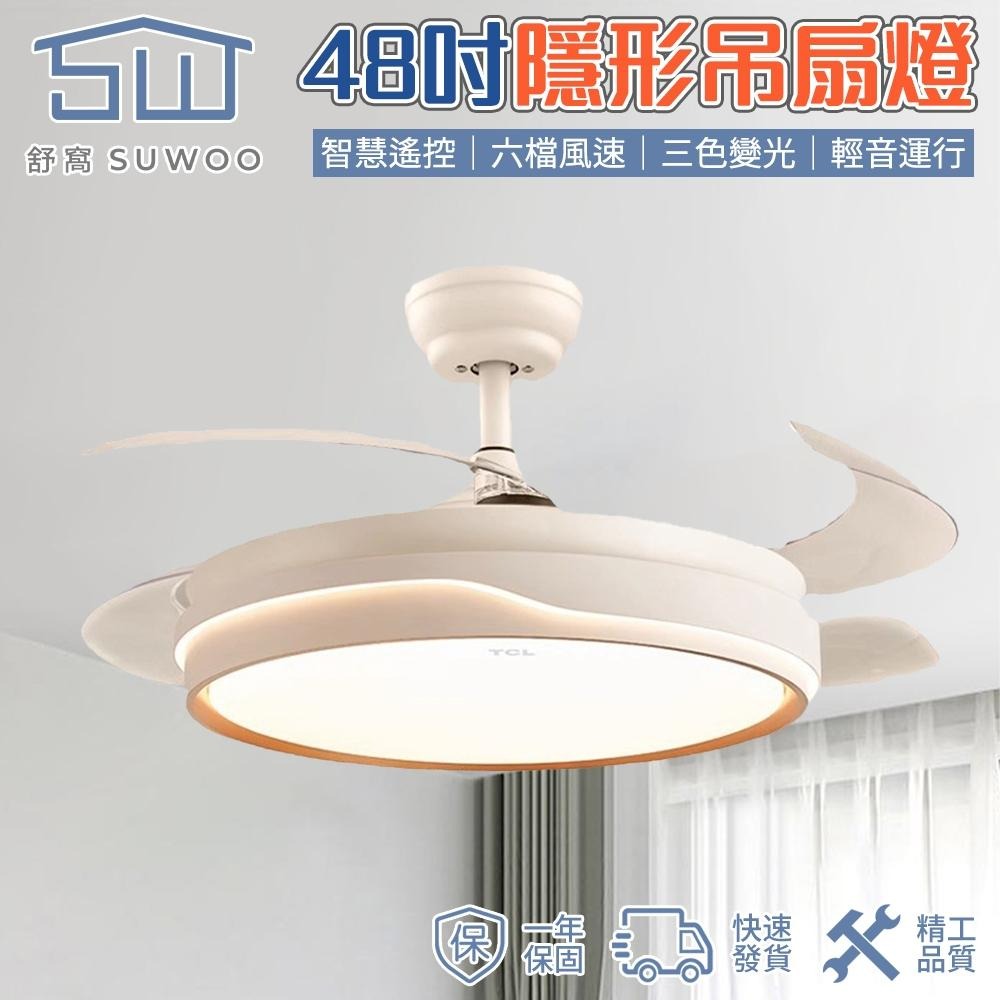 【Suwoo舒窩】48吋吊扇燈 led吸頂燈 隱形風扇燈 奶油風餐廳客廳電扇燈 家用臥室吊扇吊燈 帶電風扇吊燈 循環扇