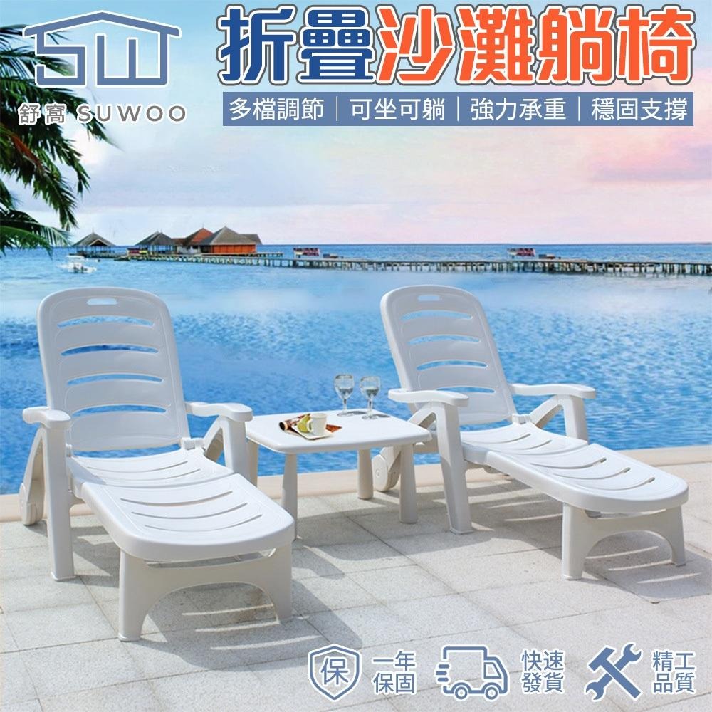 【SUWOO 舒窩】戶外沙灘椅 休閒摺疊躺椅 加厚塑膠椅 水上樂園游泳池躺椅 可躺可坐 海灘椅 躺椅摺疊椅